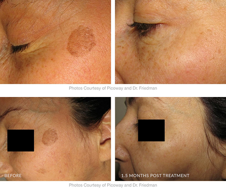As mentioned above, for melasma, a very effective treatment is to combine the Picoway Laser with a couple of gentle passes with the Fraxel 1927nm, a treatment we refer to as “Clear and Lighten”.